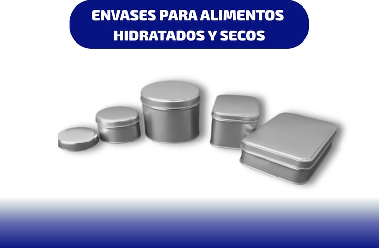 Fabricamos envases metálicos en hojalata estañada de alta calidad para alimentos hidratados y secos. Nuestros envases garantizan protección, frescura y durabilidad, preservando el sabor y las propiedades de cada producto. Ideales para maní, galletas, pastas, avena y otros alimentos procesados. Ofrecemos soluciones resistentes, seguras y con excelente presentación para la industria alimentaria.